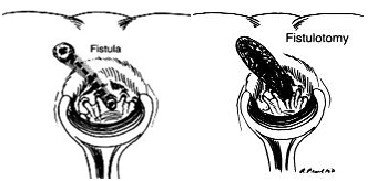 1) Fistulotomy. This is done in 85-95% of cases and involves cutting open the whole length of the fistula in order to flush out the contents. This heals in one to two months.