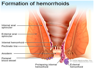 Hemorrhoids are enlarged veins located in the lower part of the rectum and the anus. They become swollen because of increased pressure within them, usually due to straining at stools.